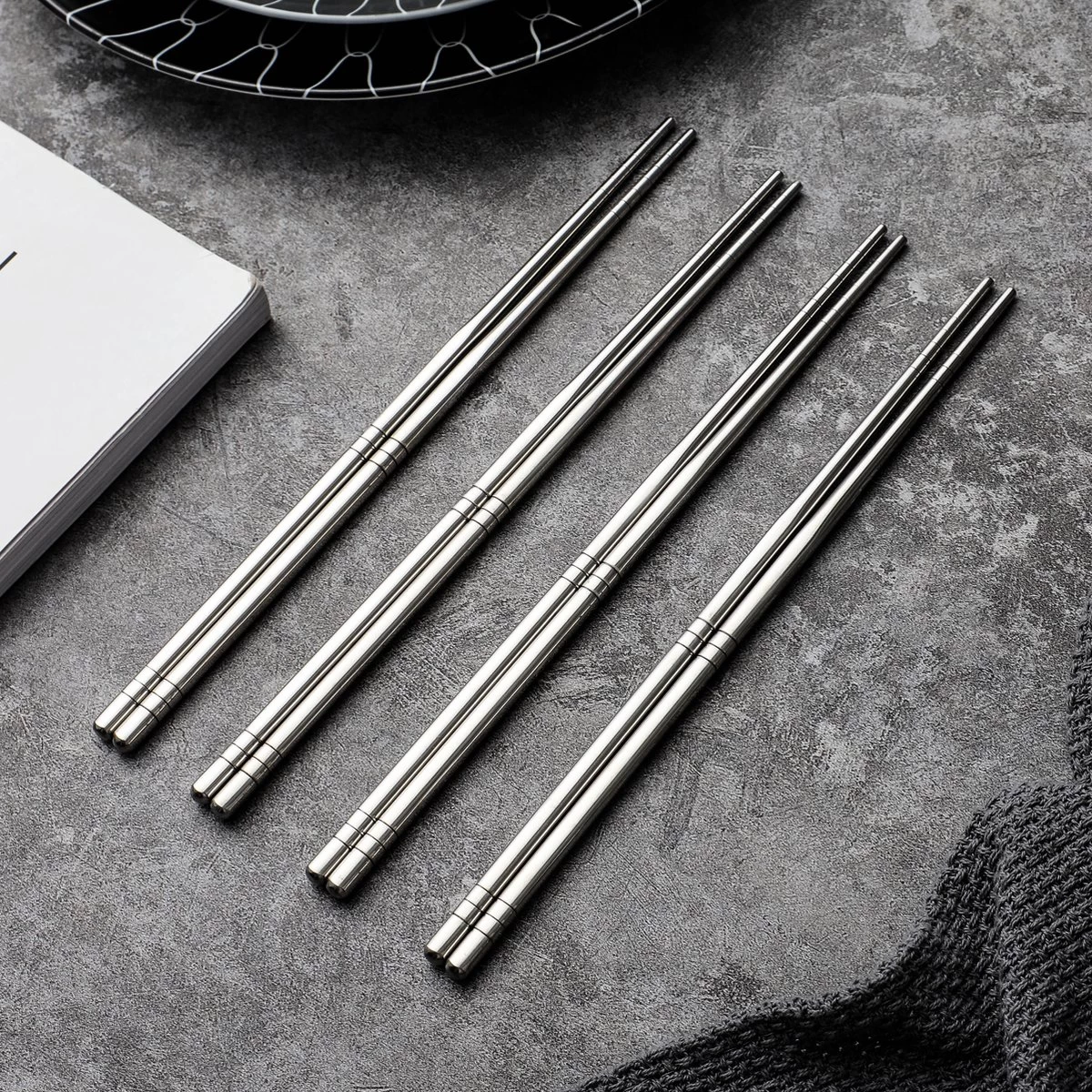 De eetkstokjes zijn vervaardigd uit hoogwaardig food grade RVS. Dit zorgt ervoor dat ze jaren meegaan en ze geen metalen bijsmaak met zich meebrengen. De set bestaan uit 6 paar, 12 stuks eetstokjes die na gebruik eenvoudig gereinigd kunnen worden in je vaatwasmachine.