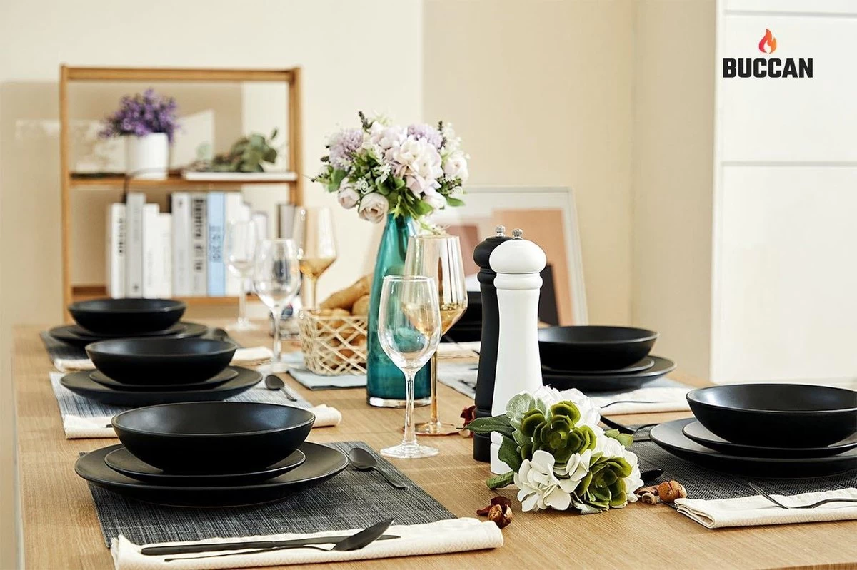 Op elk moment van de dag wordt servies gebruikt, van ontbijt, lunch tot diner. Dit mat zwarte Buccan servies helpt je niet alleen de dag door, het is ook een elegante toevoeging aan je eettafel. De matte zwarte afwerking van de borden is een uniek visueel kenmerk, dat zeker de finishing touch is voor jouw dinerervaring.