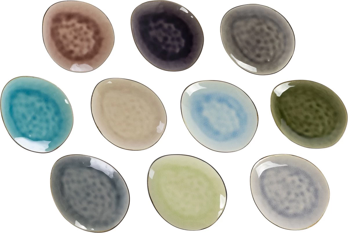 “Organische Streetfood Festival bordjes van Cosy&Trendy, een bonte mengeling van speciale tinten. Deze bordjes zijn geschikt voor aperitiefhapjes, tapas, fingerfood. 10 kleuren die perfect passen bij het kleurrijke voedsel van verschillende continenten dat doorgaans bij foodtrucks op de kaart staat.