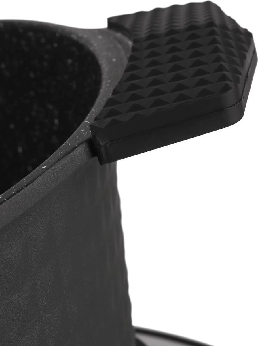 Deze prachtige pannenset van Edënbërg wordt geproduceerd onder de strengste Duitse normen en met het beste aluminium. De bodem is bedekt met maar liefst 3 lagen marmer met een mooie zwarte binnenkant die niet verkleurd. Dankzij de dikke bodem zijn de pannen zeer duurzaam en wordt het eten gelijkmatig verwarmd.