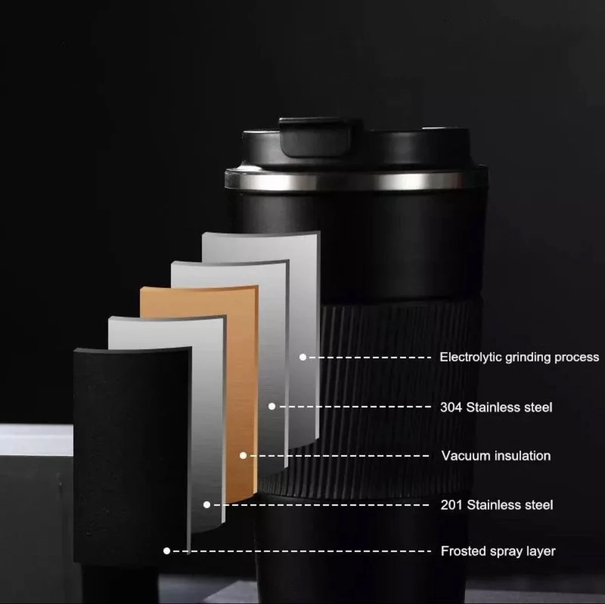 Krijg korting op koffie en thee met de reisbeker van Elephant & Co Wist je dat je dat je tegenwoordig bij veel kiosken en koffietentjes korting krijgt als je je eigen reisbeker meeneemt? Ga dus voor een voordelige refill en geniet van jouw verse cappuccino! Waarom de reisbeker van Elephant & Co? Een beter milieu: Met de aankoop van jouw Elephant & Co reisbeker help jij mee aan een duurzame oplossing voor het wereldwijze plastic afvalprobleem. Met de dubbelwandige RVS geïsoleerde travel cup vervang jij eenvoudig alle To-Go bekers. Geen onnodige verspilling meer! Openen en sluiten in één handbeweging en makkelijk voor onderweg: Het innovatieve ontwerp zorgt ervoor dat je snel en gemakkelijk in één handomdraai de Koffiebeker kan openen en sluiten. Perfect voor als je onderweg bent of gewoon een slok wil nemen. 100% lekvrij, beter kan niet: Met een double wall insulated reisbeker is functionaliteit erg belangrijk. Daarom is de double wall insulated travel cup van Elephant & Co worpen met een rubberen anti-lek strip aan de binnenkant van de dop. Deze zorgt ervoor dat je geen hete koffie of thee morst terwijl je aan het rijden bent. Geen onnodige lekkages in je tas die de elektronica kapot maakt. Morsen is verleden tijd! Anti-slip bodem: De onderkant van onze double wall insulated reisbekeris voorzien van een rubberen antislip bodem, waardoor jouw travel cup stevig staat en niet ongewenst verschuift. Inhoud is ook belangrijk, 380ml: Wij vinden het belangrijk dat onze reisbeker van alle gemakken is voorzien. Daarom passen er ongeveer 3 koppen koffie in de travel cup en is jouw nieuwe beker hervulbaar bij bijna alle koffieshops. Daarnaast heeft onze reisbeker de perfecte maat en is geschikt voor de bekerhouders van de meeste auto’s. Eenvoudig afwasbaar: Drink jij veel verschillende drankjes op een dag? Onze reisbeker is makkelijk met de hand af te wassen zodat jij koffie, thee, chocolademelk, of juist een koude drank in de beker kan doen. Zo geniet je ’s ochtends van koffie en ’s middags van jouw frisdrank en hou je hem ook nog eens lang mooi. 100% Tevredenheidsgarantie Reden genoeg om jouw nieuwe double wall insulated reisbeker aan te schaffen. Wij bieden, naast een top product, ook een 100% tevredenheidsgarantie. Is de koffiebeker om wat voor reden dan ook toch niet geschikt voor jou? Dan staan we voor je klaar en is retourneren binnen 30 dagen helemaal gratis.