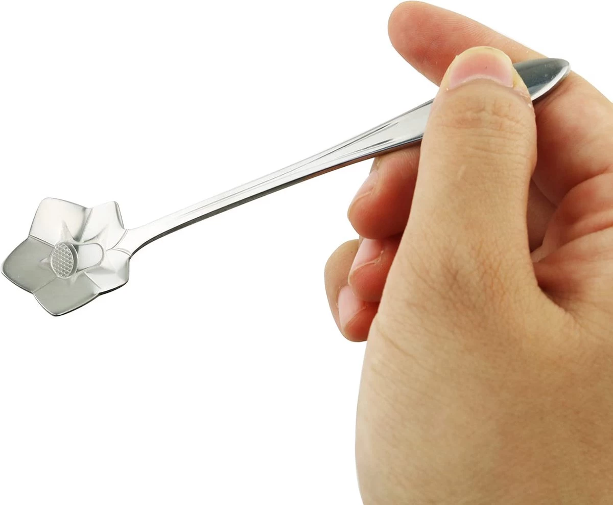 Een set van 8 lepeltjes in de vorm van verschillende bloemen. Deze theelepels / koffielepels zijn gemaakt van RVS en en hebben allemaal een verschillende vorm. In het set zitten de volgende bloemen: Zonnebloem, Cosmos Bloem, Roos, Viooltje, Madeliefje, Kersenbloesem, Ballonbloem en de Pruimenbloesem. Dit Fako Bijoux® bloemen set bestaat uit 8 lepeltjes van ongeveer 12cm lang en worden geleverd in een handig opbergzakje.