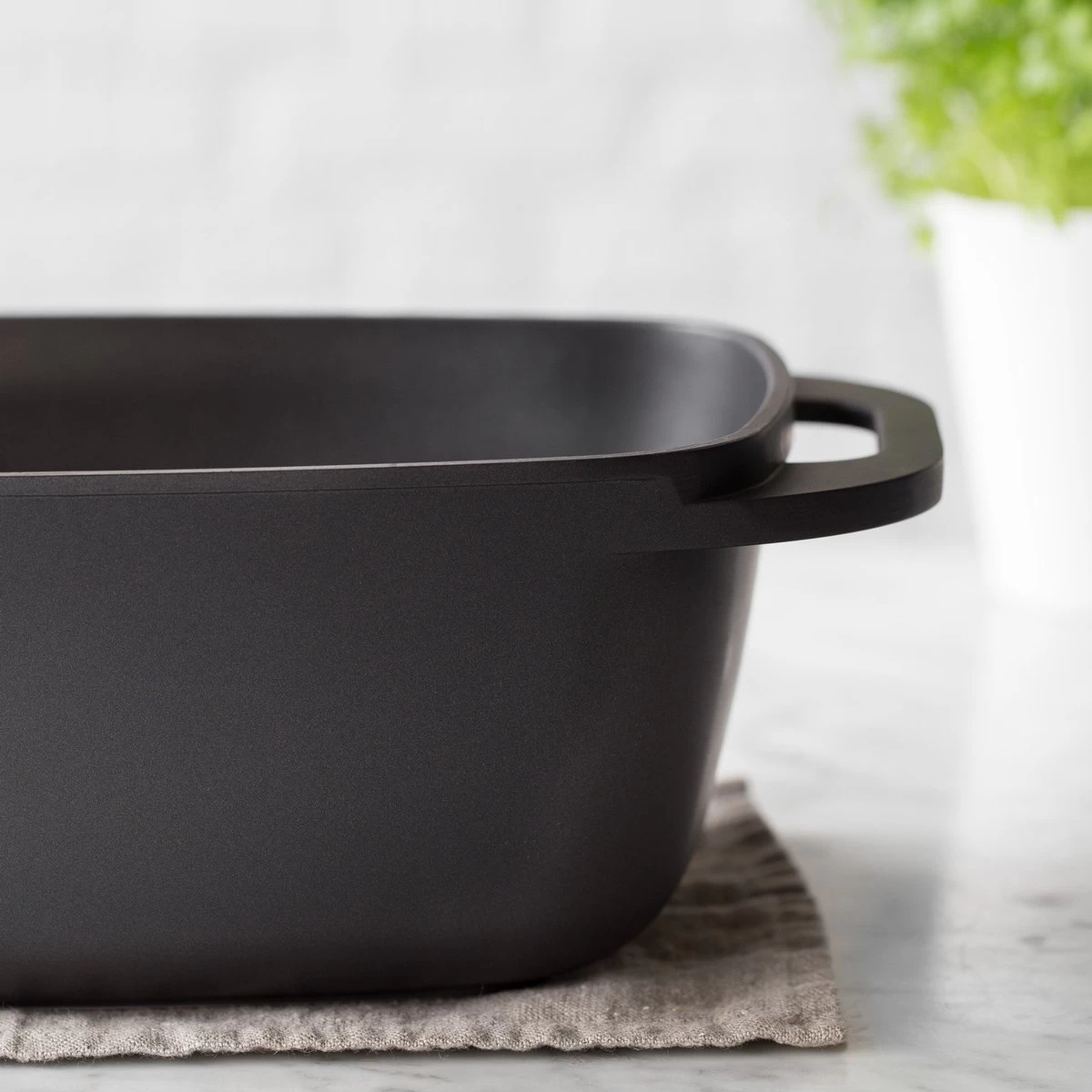 De gegoten aluminium braadpan met glazen deksel en grilldeksel van Kitchen Crew is een echte allrounder op het gebied van braden, stoven en koken. Kruidige rouladen, zacht braden, sappige steak en krokante grillgroenten behoren voor de veelzijdige braadpan tot de lichtste oefeningen.