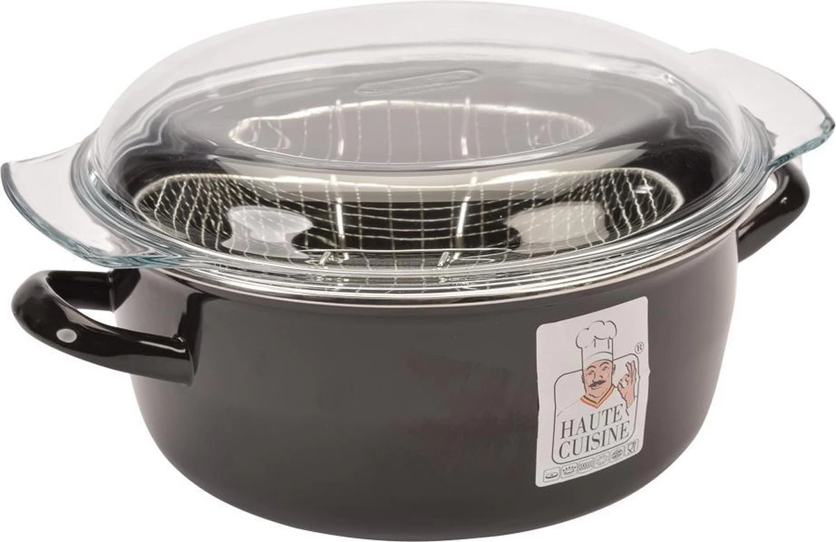 Haute Cuisine Frituurpan – Glazen Deksel & Korf – Ø 26cm – Emaille