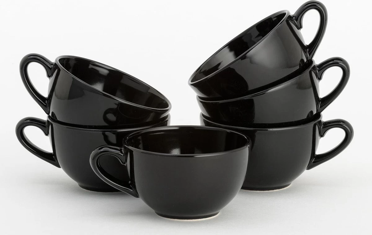 Lite-Body Hermes Soepkom Met Oor – Set Van 6 Stuks – 12 Cm/30 Cl – Aardewerk – Zwart Mat