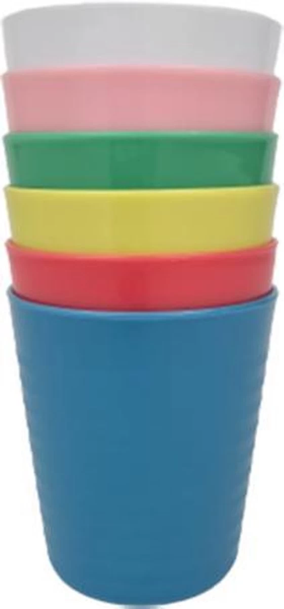 In deze vrolijk gekleurde bekers serveer je de lekkerste drankjes.