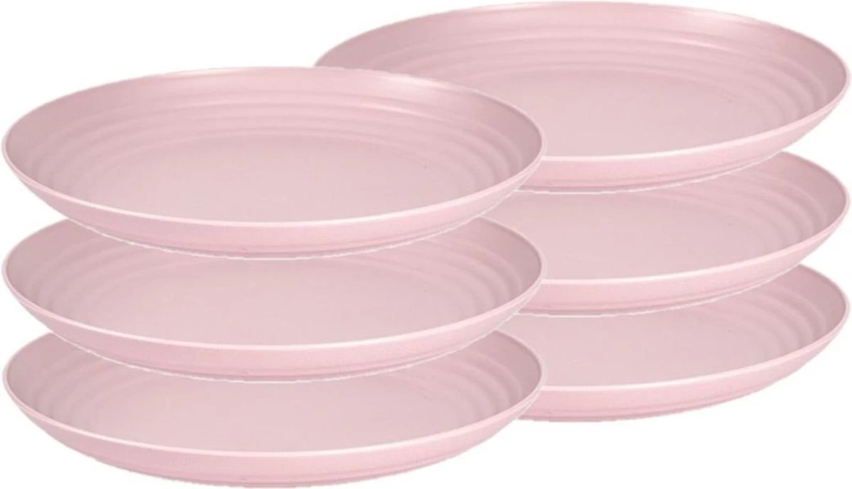 Set van 6x stuks rond oude roze borden gemaakt van kunststof. Ideaal voor de barbecue, diner of voor op de camping. Afmeting: ca. 25 x 3 cm. Herbruikbaar, hard plastic.