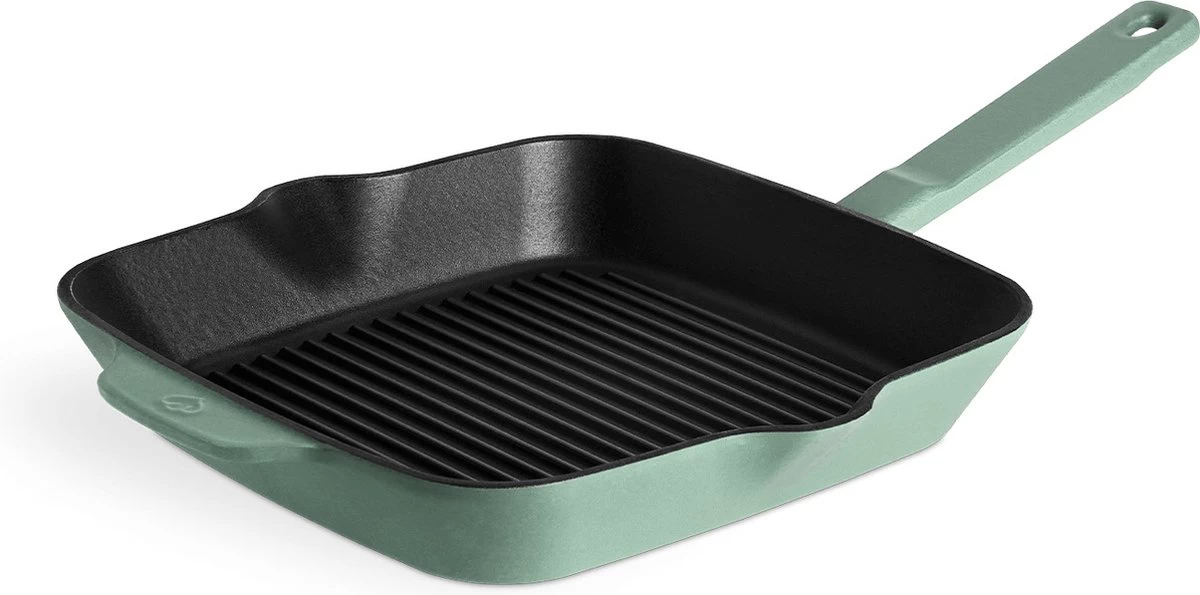 De mat glanzende emaillaag beschermt het gietijzer van je braadpan tegen krassen. Daarnaast kun je hem makkelijk met water, afwasmiddel en een zachte spons schoonmaken. Meer heb je niet nodig om je gietijzeren braadpan lang mee te laten gaan.