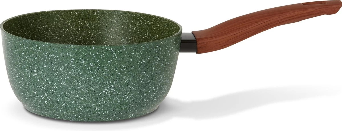 De Natura is de eerste, 100% Recycled, Groene pan met een anti-kleef laag gemaakt van plantenextracten. De pan-body, maar ook de greep in hout-look is van ge-recycled materiaal gemaakt. De Natura steelpan is geschikt voor: gas, elektra, keramisch, halogeen en ook inductie.